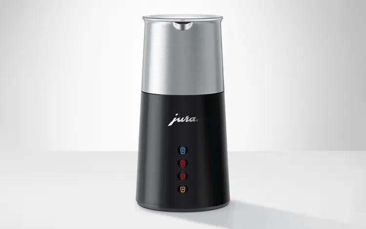 Le lait au chocolat, qui peut être préparé avec des morceaux de fine tablette de chocolat grâce à une technologie performante, constitue un point fort particulier. Le design de l’émulsionneur de lait séduit par son élégance et sa fonctionnalité. Avec seulement quatre symboles, son utilisation est simple et directe. Le socle conique assure une bonne stabilité et contient le récipient à lait, créant ainsi un ensemble élégant et harmonieux. Le bec verseur légèrement incurvé permet de verser la mousse de lait ou le chocolat chaud avec précision et propreté. L’émulsionneur de lait Hot & Cold est le complément idéal des machines à café automatiques Pure Coffee de JURA, et devient rapidement un allié indispensable pour la préparation de café.